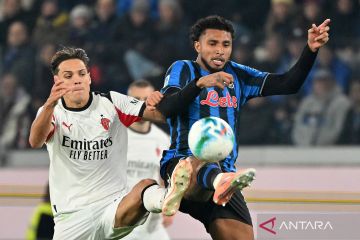 Pesepak bola AC Milan Matteo Gabbia (kiri) berebut bola dengan pesepakbola Atalanta Yunus Munsah (kanan) dalam laga lanjutan Serie A di Bergamo, Italia, Rabu (29/10/2025). AC Milan ditahan imbang Atalanta dengan skor 1-1. ANTARA FOTO/Xinhua/Alberto Lingria/bar