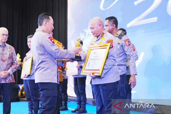Kapolda Kalimantan Selatan Irjen Pol Rosyanto Yudha Hermawan menerima Kompolnas Awards 2025 yang diserahkan Kapolri Jenderal Polisi Listyo Sigit Prabowo. (ANTARA/HO-HumasPolri)Baca juga: Polda Kalsel wujudkan ketahanan pangan
