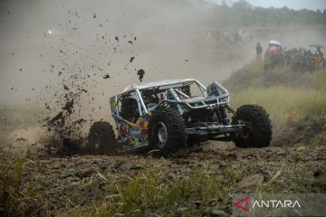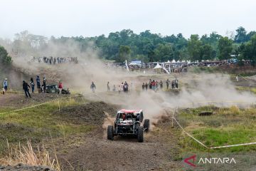 Pembalap memacu kendaraannya saat mengikuti NC Racing Adventure 2025 di Sirkuit Gunung Pinang, Waringin Kurung, Kabupaten Serang, Banten, Minggu (19/10/2025). Lahan bekas tambang galian C tersebut dijadikan arena balap off-road sebagai upaya meningkatkan perekonomian dari sektor pariwisata bagi warga setempat sekaligus rehabilitasi kawasan bekas tambang pasir. ANTARA FOTO/Muhammad Bagus Khoirunas/agr