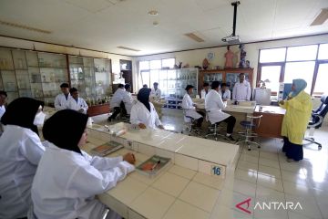 Sejumlah siswa mengikuti pelajaran uji golongan darah di laboratorium di Madrasah Aliyah Negeri (MAN) Insan Cendikia, Kabupaten Bone Bolango, Gorontalo, Selasa (7/10/2025). Madrasah Aliyah Negeri Insan Cendikia disiapkan untuk menjadi salah satu lokasi pengenalan Sekolah Garuda dalam rangka penyeimbangan dan perluasan akses berprestasi serta akselerasi pengembangan talenta sains dan teknologi Indonesia. ANTARA FOTO/Adiwinata Solihin/nym.