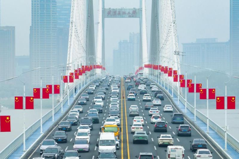 Orang-orang menghadiri upacara pengibaran bendera yang menandai peringatan 76th berdirinya Republik Rakyat Tiongkok di Lapangan Tian'anmen di Beijing, ibukota China, 1 Oktober 2025. ANTARA/Xinhua/Xing Guangli Sebuah foto drone yang diambil pada 1 Oktober 2025 menunjukkan kendaraan melewati Jembatan Sungai Yangtze Kedua di Wuhan, Provinsi Hubei, China tengah. ANTARA/Xinhua/Xiao Yijiu