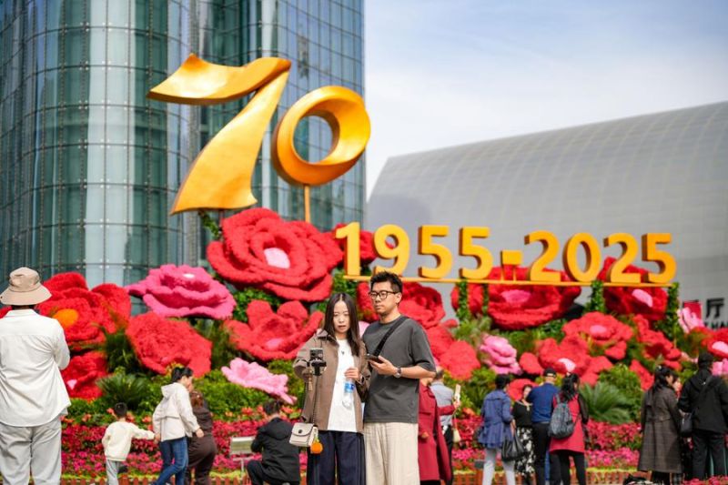 Orang-orang bersenang-senang di zona pejalan kaki dulunya adalah jembatan kereta api di Harbin, timur laut Provinsi Heilongjiang, China, 1 Oktober 2025. ANTARA/Xinhua/Zhang Tao Anak-anak berpose untuk foto kelompok di depan instalasi "keranjang bunga" di Hefei, Provinsi Anhui, China timur, 1 Oktober 2025. ANTARA/Xinhua/Chen Sanhu Wisatawan mengambil foto di depan satu set instalasi bunga yang menandai peringatan 70th pembentukan Daerah Otonomi Xinjiang Uygur di Urumqi, Daerah Otonomi Xinjiang Uygur di barat laut China, pada 1 Oktober 2025. ANTARA/Xinhua/Xu Hongyan