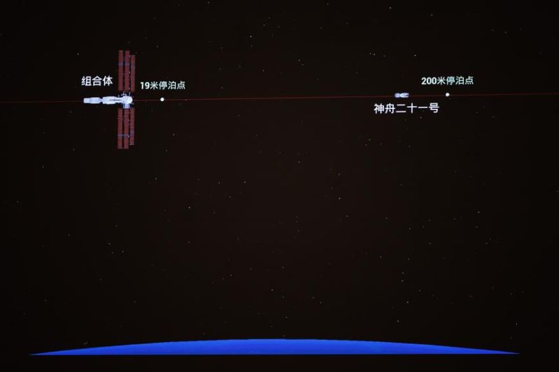 Setelah memasuki orbit, wahana antariksa berawak Shenzhou-21 melakukan pertemuan (rendezvous) dan penambatan (docking) cepat otomatis dengan porta depan Tianhe, modul inti stasiun luar angkasa China, pada pukul 03.22 Waktu Beijing (02.22 WIB). Seluruh proses memakan waktu sekitar 3,5 jam, demikian menurut CMSA.