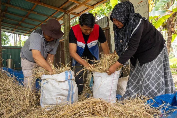 "Dahulu, tumpukan jerami ini kami bakar. Tapi setelah mendapatkan edukasi dan bimbingan dari Pertamina, limbah jerami kini diolah menjadi campuran parfum dan pupuk," kata Yul Bahri.
