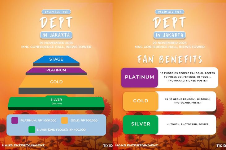 Seat plan dan keuntungan bagi penikmat konser Musisi R&B dan Soul asal Korea Selatan Dept dalam "Dream Age Tour Jakarta 2025". (ANTARA/HO-Hans Entertainment)Baca juga: Radiohead umumkan jadwal konser baru setelah jeda 7 tahun