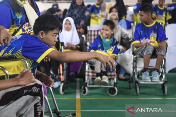 Penyandang disabilitas melempar bola saat mengikuti Festival Olahraga Disabilitas di Samarinda, Kalimantan Timur, Minggu (19/10/2025). Program yang diselenggarakan oleh Komite Paralimpiade Nasional Indonesia (NPC Indonesia) Kalimantan Timur itu diikuti sekitar 294 orang dari jenjang setingkat SDLB hingga SMALB di Samarinda untuk menjaring bibit atlet di enam cabang olahraga prestasi yakni atletik, anggar kursi roda, bulu tangkis, boccia, tenis meja, hingga catur. ANTARA FOTO/M Risyal Hidayat/wpa.