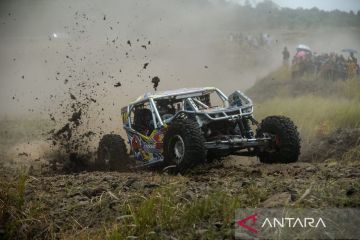 Pembalap memacu kendaraannya saat mengikuti NC Racing Adventure 2025 di Sirkuit Gunung Pinang, Waringin Kurung, Kabupaten Serang, Banten, Minggu (19/10/2025). Lahan bekas tambang galian C tersebut dijadikan arena balap off-road sebagai upaya meningkatkan perekonomian dari sektor pariwisata bagi warga setempat sekaligus rehabilitasi kawasan bekas tambang pasir. ANTARA FOTO/Muhammad Bagus Khoirunas/tom.