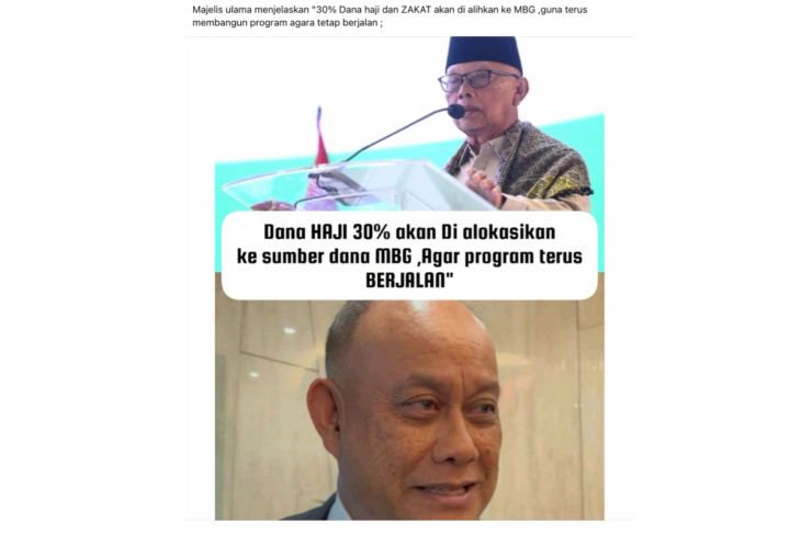 Dengan demikian, narasi bahwa 30 persen dana haji dan zakat dialihkan untuk MBG merupakan hoaks.