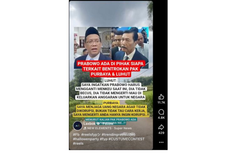 Dengan demikian, klaim yang menyebut Luhut meminta Prabowo mengganti Menteri Keuangan Purbaya tidak berdasar.