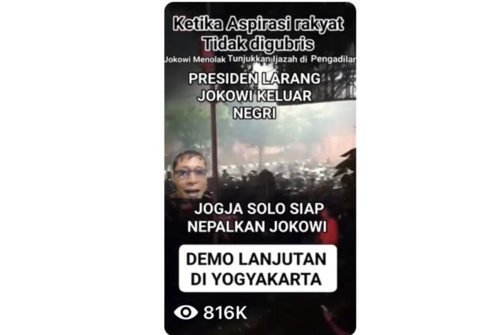 Dalam video berdurasi satu menit 30 detik itu, ditampilkan rekaman amatir yang menunjukkan sekelompok orang berlari dan diklaim sebagai demonstrasi lanjutan di Yogyakarta.