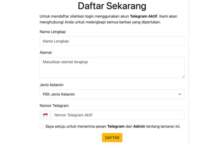 Tautan tersebut justru meminta pengguna untuk mengisi data pribadi seperti nama lengkap, alamat, jenis kelamin, dan nomor telepon yang terhubung ke akun Telegram, sehingga terindikasi sebagai upaya phishing atau penipuan digital.