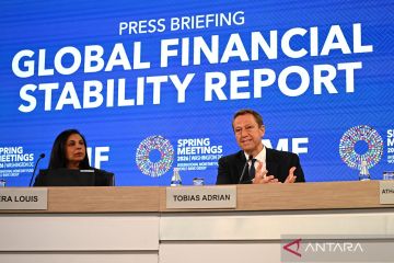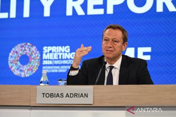 Direktur Departemen Pasar Moneter dan Modal Dana Moneter Internasional (IMF) Tobias Adrian berbicara dalam konferensi pers terkait Global Financial Stability Report di Washington, D.C., Amerika Serikat, Selasa (14/4/2026). IMF memperingatkan bahwa risiko terhadap stabilitas keuangan global meningkat di tengah situasi yang berkembang di Timur Tengah. ANTARA FOTO/Xinhua/Li Rui/bar