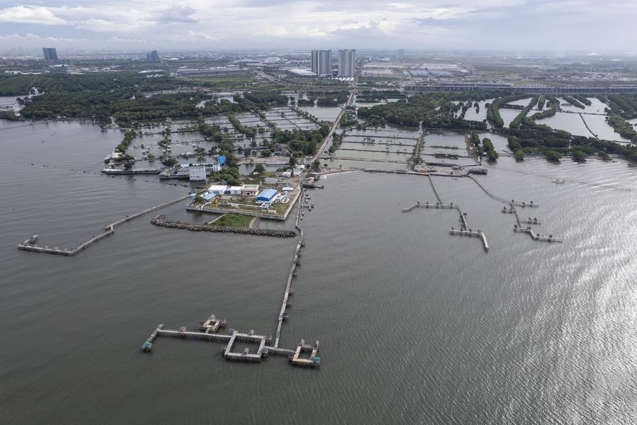 Foto dari udara yang diambil dengan drone pada 13 November 2025 ini memperlihatkan hutan bakau, permukiman, dan tambak ikan di pesisir Desa Ketapang, Kabupaten Tangerang, Banten. (Xinhua/Veri Sanovri)Muara Gembong pernah dikenal dengan sabuk hutan bakaunya yang membentang sepanjang 25 kilometer di garis pantai utara Jawa. Sebuah studi pada 2019 menemukan bahwa sejak 1976, area tersebut telah kehilangan 55 persen hutan bakaunya.