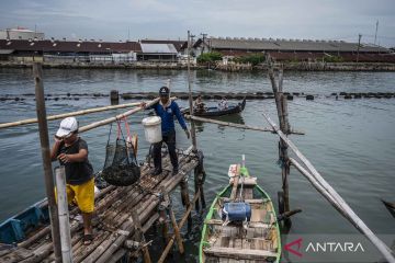 Nelayan mencari ikan di pesisir Tambaklorok, Semarang, Jawa Tengah, Minggu (9/11/2025). Kementerian Kelautan dan Perikanan (KKP) telah meluncurkan Rencana Aksi Nasional Pengelolaan Perikanan Skala Kecil (RAN PPSK) sebagai wujud nyata komitmen untuk memperkuat kesejahteraan dan keberlanjutan nelayan kecil di Indonesia melalui perlindungan dan pemberdayaan nelayan, pembudi daya ikan, serta petambak garam dengan berfokus pada penguatan tata kelola kolaboratif, peningkatan nilai rantai pasok, dan pelaksanaan yang terukur guna mendukung ketahanan pangan. ANTARA FOTO/Aprillio Akbar/YU