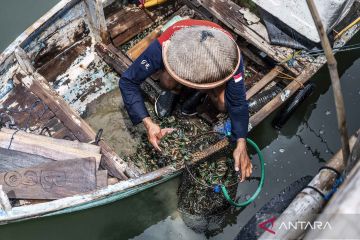 Nelayan memidahkan kerang hasil panen di pesisir Tambaklorok, Semarang, Jawa Tengah, Minggu (9/11/2025). Kementerian Kelautan dan Perikanan (KKP) telah meluncurkan Rencana Aksi Nasional Pengelolaan Perikanan Skala Kecil (RAN PPSK) sebagai wujud nyata komitmen untuk memperkuat kesejahteraan dan keberlanjutan nelayan kecil di Indonesia melalui perlindungan dan pemberdayaan nelayan, pembudi daya ikan, serta petambak garam dengan berfokus pada penguatan tata kelola kolaboratif, peningkatan nilai rantai pasok, dan pelaksanaan yang terukur guna mendukung ketahanan pangan. ANTARA FOTO/Aprillio Akbar/YU
