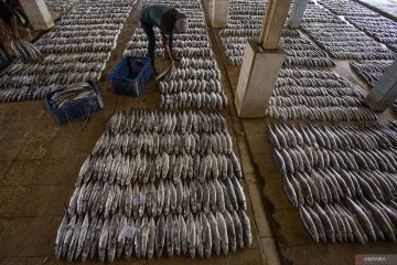 Nelayan mengumpulkan ikan hasil tangkapan sebelum dilelang di Tempat Pelelangan Ikan Majakerta, Balongan, Indramayu, Jawa Barat, Sabtu (1/11/2025). Kementerian Kelautan dan Perikanan (KKP) memastikan volume penangkapan ikan nasional sepanjang tahun 2025 tidak akan melebihi 7 juta ton, kebijakan pembatasan ini dilakukan untuk menjaga keberlanjutan sumber daya laut sekaligus menyeimbangkan antara kebutuhan ekonomi dan ekologi. ANTARA FOTO/Dedhez Anggara/tom.ANTARA FOTO/Dedhez Anggara/foc.