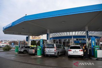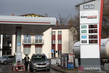 Pengemudi yang berasal dari Jerman mengisi bensin di kendaraanya di sebuah SPBU di Slubice, Polandia, Senin (16/03/2026). Warga Jerman beramai-ramai ke Polandia untuk mendapatkan bahan bakar yang lebih murah di tengah ketegangan Timur Tengah. ANTARA FOTO/Xinhua/Zhang Haofu/agr