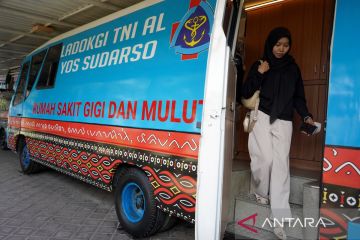 Seorang pasien keluar dari mobil klinik kesehatan Lembaga Kedokteran Gigi (Ladokgi) TNI AL Yos Sudarso usai melakukan pemeriksaan gigi di Makassar, Sulawesi Selatan, Kamis (16/10/2025). Mobil klinik milik Rumah Sakit Gigi dan Mulut (RSGM) Ladokgi TNI AL Yos Sudarso itu digunakan untuk melayani pasien dengan kasus ringan seperti pencabutan, penambalan, serta pemeriksaan karang gigi yang dapat dipesan melalui aplikasi JKN dan diutamakan bagi lansia dengan keterbatasan akses dan mobilitas. ANTARA FOTO/Hasrul Said/tom.