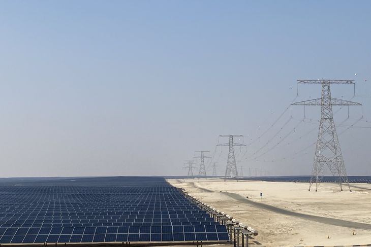 Abu Dhabi (ANTARA) - Dari kejauhan, kawasan gurun pasir Abu Dhabi tampak berkilau. Bukan oleh pasir atau fatamorgana, melainkan oleh hamparan panel surya yang membentang sejauh mata memandang.