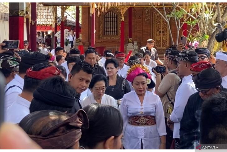 Di Denpasar, Senin, Megawati terpantau tiba di rumah duka sekitar pukul 11.00 Wita memakai kebaya putih dan kamen hitam, senada dengan pakaian Prananda Prabowo, sementara Hasto Kristiyanto yang belum lama bebas juga datang dengan pakaian adat Bali dengan udeng merah.