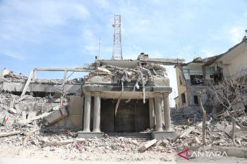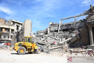 Sebuah bangunan hancur akibat serangan AS-Israel di Tehran, Iran, Rabu (4/3/2026). ANTARA FOTO/Xinhua/Shadati/bar