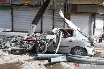 Sebuah mobil hancur akibat serangan AS-Israel di Tehran, Iran, Rabu (4/3/2026). ANTARA FOTO/Xinhua/Shadati/bar