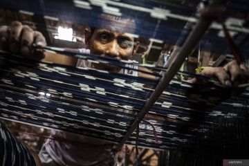 Perajin memeriksa benang saat menyelesaikan pembuatan kain tenun ikat Troso di rumah produksi Kamenz Troso, Desa Troso, Pecangaan, Jepara, Jawa Tengah, Kamis (2/10/2025). Menurut sejumlah perajin setempat, produksi kain tenun khas Jepara yang dibuat secara tradisional dengan Alat Tenun Bukan Mesin (ATBM) itu mencapai sekitar 500 potong per bulan, dengan harga jual mulai Rp75.000 hingga Rp500.000 per potong dan dipasarkan tidak hanya ke berbagai daerah di Indonesia, tetapi juga ke Myanmar, Thailand, dan Australia. ANTARA FOTO/Aprillio Akbar/foc.