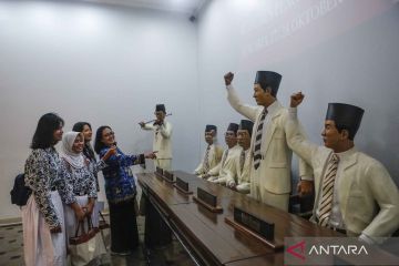 Sejumlah siswa mengamati diorama kongres pemuda usai mengikuti upacara peringatan Hari Sumpah Pemuda di Museum Sumpah Pemuda, Jakarta, Selasa (28/10/2025). Museum dan Cagar Budaya Kementerian Kebudayaan menggelar upacara untuk memperingati Hari Sumpah Pemuda ke-97 sebagai bentuk penghormatan atas semangat para pemuda. ANTARA FOTO/Asprilla Dwi Adha/YU