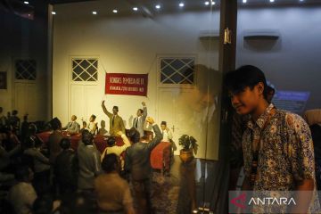 Sorang siswa mengamati diorama kongres pemuda usai mengikuti upacara peringatan Hari Sumpah Pemuda di Museum Sumpah Pemuda, Jakarta, Selasa (28/10/2025). Museum dan Cagar Budaya Kementerian Kebudayaan menggelar upacara untuk memperingati Hari Sumpah Pemuda ke-97 sebagai bentuk penghormatan atas semangat para pemuda. ANTARA FOTO/Asprilla Dwi Adha/YU
