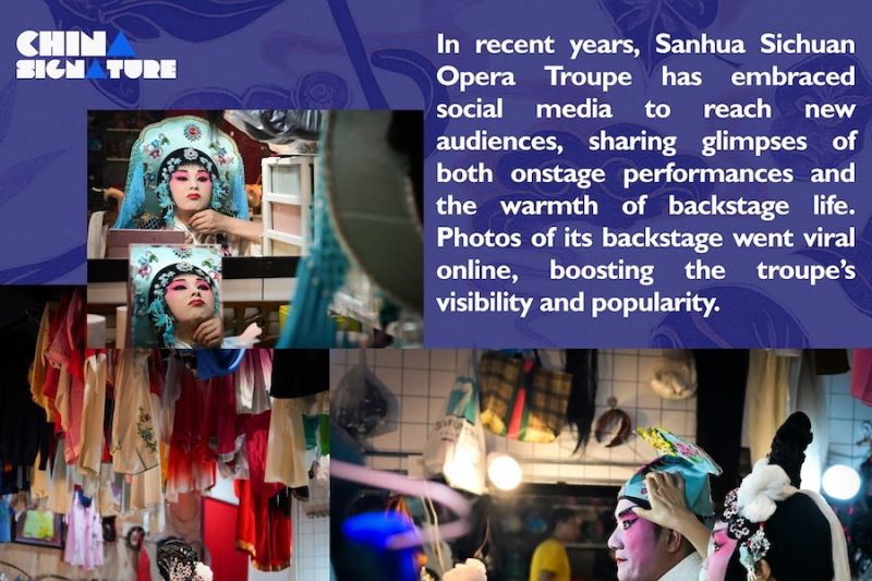 Dalam beberapa tahun terakhir, Grup Opera Sichuan Sanhua memanfaatkan media sosial untuk menjangkau audiens baru, berbagi sekilas penampilan mereka di atas panggung dan hangatnya kehidupan di balik panggung. Foto-foto di balik panggung mereka pun menjadi viral di dunia maya, meningkatkan visibilitas dan popularitas grup tersebut. ANTARA/Xinhua