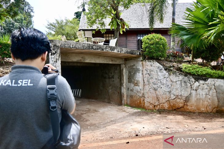 Seorang pengunjung memotret garasi mobil di situs ke-18 Geopark Meratus Pesanggrahan Belanda Mandiangin Tahura Sultan Adam di Desa Mandiangin Timur, Kecamatan Karang Intan, Kabupaten Banjar, Kalimantan Selatan, Kamis (28/8/2025). (ANTARA/Tumpal Andani Aritonang)Editor: Sapto Heru Purnomojoyo