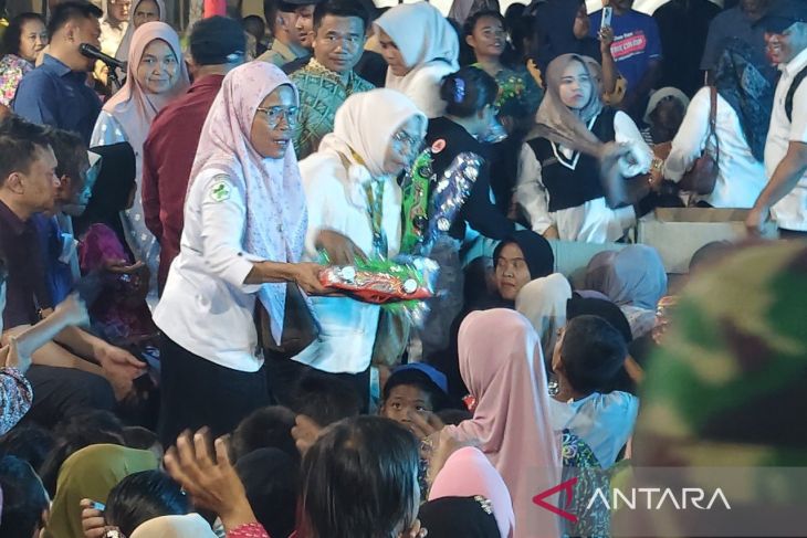 Ada beberapa badut berkostum beruang dan tokoh kartun. Untuk menambah kegembiraan, anak-anak dibagikan mainan satu per satu.