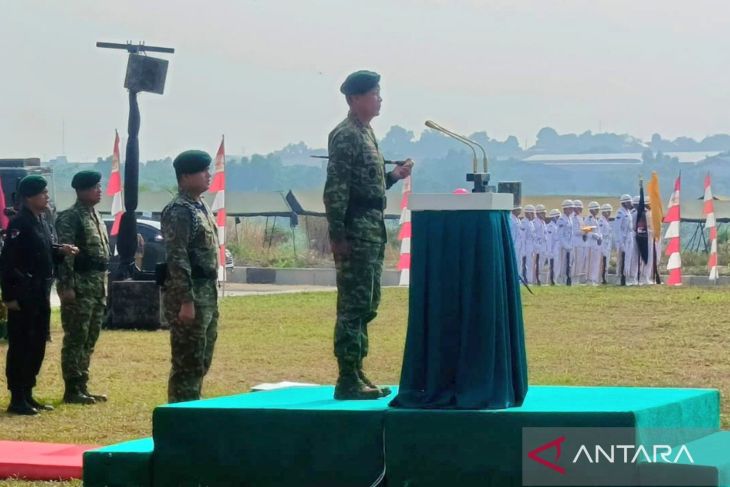 Panglima Komando Cadangan Strategis Angkatan Darat Letnan Jenderal TNI Mohammad Fadjar memimpin upacara militer peresmian pembentukan Satuan Batalyon Intai Tempur di Lapangan Yontaipur Desa Sukadami, Kecamatan Cikarang Selatan, Kabupaten Bekasi, Selasa.ANTARA/Pradita Kurniawan Syah.Dia mengatakan pembentukan satuan baru ini dalam rangka penataan organisasi guna memperkuat postur TNI agar semakin adaptif, responsif serta mampu menjawab tantangan tugas ke depan.