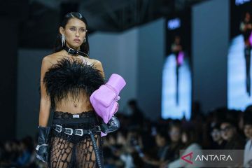 Model memperagakan busana rancangan Peau pada Jakarta Fashion Week (JFW) 2026 di Pondok Indah Mall 3, Jakarta, Senin (27/10/2025). Peragaan busana yang menampilkan rancangan Peau dengan tema Fragment of Anomaly. ANTARA FOTO/Asprilla Dwi Adha/YU