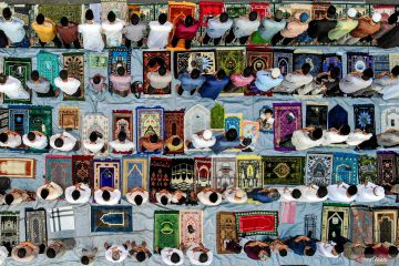 Umat Islam melaksanakan Shalat Idul Fitri 1447 H di halaman Keraton Kasunanan Surakarta Hadiningrat Solo, Jawa Tengah, Jumat (20/3/2026). Panitia dari Jamaah Pemuda Islam Baluwarti menggelar dua kali pelaksanaan Shalat Idul Fitri 1447 H di halaman keraton setempat yaitu pada Jumat (20/3/2026) dan Sabtu(21/3/2026). ANTARAFOTO/Maulana Surya/foc.