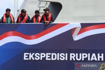 Sejumlah peserta Ekspedisi Rupiah Berdaulat (ERB) 2025 bersiap berlayar dengan KRI Marlin 877 di dermaga Kodaeral IV Makassar, Sulawesi Selatan, Selasa (21/10/2025). Ekspedisi yang digelar Kantor Perwakilan Bank Indonesia Sulawesi Selatan bekerja sama dengan Kodaeral IV Makassar tersebut untuk mendistribusikan uang rupiah layak edar sebesar Rp15 miliar di lima pulau terpencil yang tersebar di tiga kabupaten di wilayah Sulsel dan berlangsung selama tujuh hari. ANTARA FOTO/Arnas Padda/nz