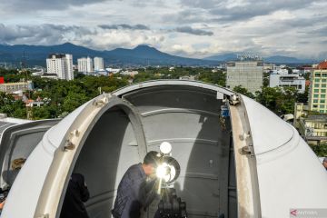 Pengamat mengamati hilal menggunakan teleskop di menara gedung Fakultas Kedokteran Kampus Universitas Islam Bandung (UNISBA), Bandung, Jawa Barat, Selasa (17/2/2026). Pemerintah melalui Kementerian Agama menetapkan 1 Ramadhan 1447 H jatuh pada Kamis, 19 Februari 2026 sesuai hasil Sidang Isbat yang digelar malam ini. ANTARA FOTO/Raisan Al Farisi/wsj.