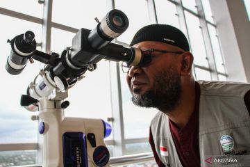 Petugas Observatorium Ilmu Falak Universitas Muhammadiyah Sumatera Utara (OIF UMSU) mengamati hilal mengunakan teropong di Universitas Muhammadiyah Sumatera Utara, Medan, Sumatera Utara, Selasa (17/2/2026). Pemerintah melalui Kementerian Agama menetapkan 1 Ramadhan 1447 H jatuh pada Kamis, 19 Februari 2026 sesuai hasil Sidang Isbat yang digelar malam ini. ANTARA FOTO/Yudi Manar/wsj.