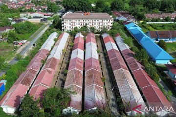 Foto udara rumah khusus (rusus) yang sedang dibersihkan di Lubuk Buaya, Padang, Sumatera Barat, Jumat (5/12/2025). Pemkot Padang menyiapkan sebanyak 80 unit rumah khusus (rusus) dan Rusunawa yang berada di Kecamatan Koto Tangah sebagai hunian sementara korban banjir bandang di kota itu. ANTARA FOTO/Iggoy el Fitra/YU