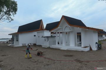Pekerja menyelesaikan pembangunan kawasan Kampung Nelayan Merah Putih (KNMP) di Pantai Plengsengan, Banyuwangi, Jawa Timur, Kamis (29/1/2026). Program pembangunan KNMP di Banyuwangi yang diinisiasi Kementerian Kelautan dan Perikanan (KKP) ini telah mencapai 97 persen dan menjadi bagian dari upaya penguatan ekonomi biru yang mengintegrasikan peningkatan kesejahteraan nelayan, pengelolaan sumber daya laut berkelanjutan serta pengembangan kawasan pesisir sebagai sentra ekonomi dan wisata berbasis kelautan. ANTARA FOTO/Budi Candra Setya/wsj.
