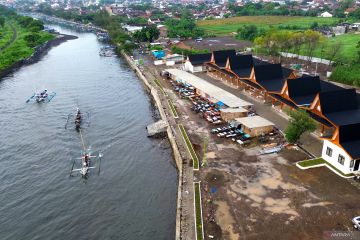 Foto udara lokasi pembangunan Kampung Nelayan Merah Putih (KNMP) di Pantai Plengsengan, Banyuwangi, Jawa Timur, Kamis (29/1/2026). Program pembangunan KNMP di Banyuwangi yang diinisiasi Kementerian Kelautan dan Perikanan (KKP) ini telah mencapai 97 persen dan menjadi bagian dari upaya penguatan ekonomi biru yang mengintegrasikan peningkatan kesejahteraan nelayan, pengelolaan sumber daya laut berkelanjutan serta pengembangan kawasan pesisir sebagai sentra ekonomi dan wisata berbasis kelautan. ANTARA FOTO/Budi Candra Setya/wsj.