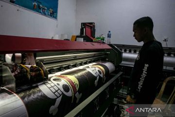 Permintaan pesanan bendera One Piece meningkat. Pekerja mencetak desain bendera bergambar anime One Piece di salah satu usaha konveksi Karanganyar, Jawa Tengah, Selasa (5/8/2025). Menurut pelaku usaha konveksi, permintaan pesanan bendera bergambar anime One Piece dari toko daring meningkat hingga 300 persen sejak awal Agustus. ANTARA FOTO/Mohammad Ayudha/nym.