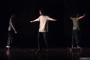 Seniman dari Komunitas Wartawan dan Penulis Budaya (Kawiya Bali) menampilkan seni teater modern berjudul Jaratkaru di Taman Budaya Bali, Denpasar, Bali, Senin (23/2/2026). Pertunjukan tersebut mengangkat berbagai cerita di antaranya tentang banjir, kemacetan, sampah, dan kehidupan sosial yang terjadi di wilayah Bali itu ditampilkan melalui seni gerak dan tutur kata berbahasa daerah Bali sebagai resonansi dan realitas kontemporer. ANTARA FOTO/Nyoman Hendra Wibowo/wsj.