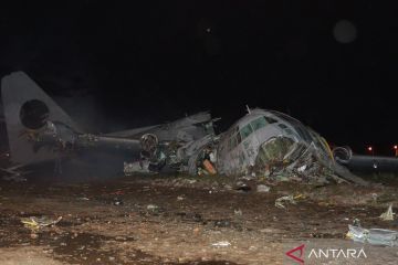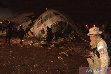 Puing pesawat kargo militer pengangkut mata uang Bolivia yang baru dicetak mengalami kecelakaan di Bandara Internasional El Alto di El Alto, Bolivia, Jumat (27/2/2026). Dalam kejadian tersebut 15 orang tewas dan 30 lainnya luka-luka. ANTARA FOTO/XInhua/Javier Mamani/agr