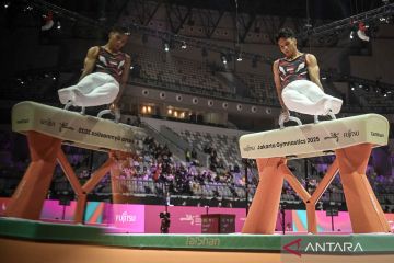 Pesenam putra Indonesia Abiyu Rafi tampil dalam nomor kuda pelana pada Kejuaraan Dunia Gimnastik 2025 di Indonesia Arena, Jakarta, Senin (20/10/2025). Pesenam putra Indonesia gagal lolos ke putaran final All-Around pada Kejuaraan Dunia Gimnastik 2025 dengan rincian Abiyu Rafi berada di posisi 48 dengan 69,197 poin, Satria Tri Yudha di posisi 65 dengan 46,498 poin, Agung Suci Akbar di posisi 238 dengan 11,133 poin, Joseph Judah Hatoguan di posisi 246 dengan 08,00 poin, sedangkan Muhammad Aprizal harus absen bertanding karena sakit. ANTARA FOTO/Fauzan/nym.