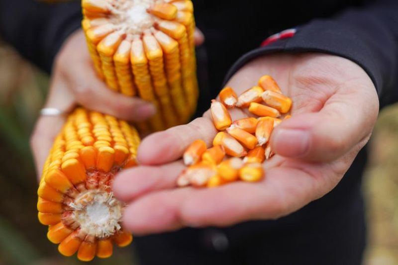 Han Fengxiang memeriksa pertumbuhan jagung di ladang jagung di Kabupaten Lishu, timur laut China, Jilin, 9 Oktober 2025. ANTARA/Xinhua/Yan Linyun Pewarta: Xinhua