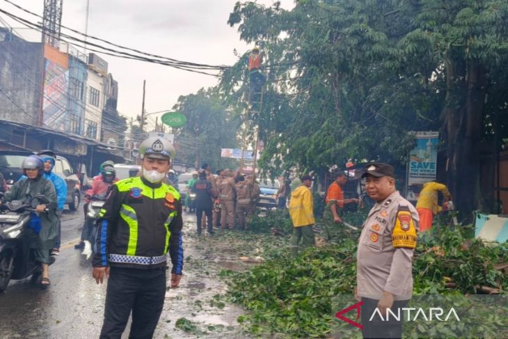 Personel Polsek Ciputat Timur bersama Bhabinkamtibmas Kelurahan Cipayung menangani pohon tumbang di Jalan RE Martadinata, Kelurahan Cipayung, Kecamatan Ciputat, Kota Tangerang Selatan, Senin (12/1/2026). ANTARA/HO-Polsek Ciputat Timur.Menurut dia, berkat kesigapan petugas gabungan di lapangan, arus lalu lintas yang sempat tersendat dapat segera dikendalikan, dan saat ini terpantau ramai lancar.