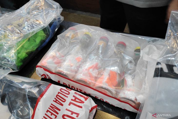 Barang bukti yang diamankan dari kasus dugaan ajakan untuk melakukan kerusuhan di DKI Jakarta, Senin (8/12/2025). ANTARA/Ilham Kausar