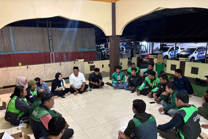 Ternate (ANTARA) - Komunitas driver ojek online (ojol) Kota Ternate dan personel Polres Ternate, Maluku Utara menggelar doa bersama untuk mendoakan almarhum Affan Kurniawan dan AKBP Darkun.