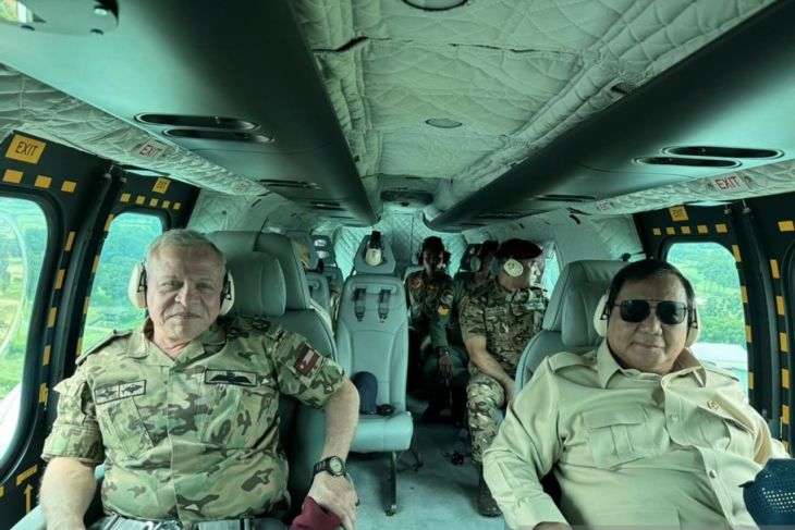 Jakarta (ANTARA) - Presiden RI Prabowo Subianto bersama Raja Kerajaan Yordania Hasyimiah, Raja Abdullah II ibn Al-Hussein menunjukkan kedekatan hubungan dua pemimpin dengan menyantap sarapan bersama, hingga menaiki helikopter sebelum melepas keberangkatan ke Lanud Halim Perdanakusuma, Jakarta, Sabtu.